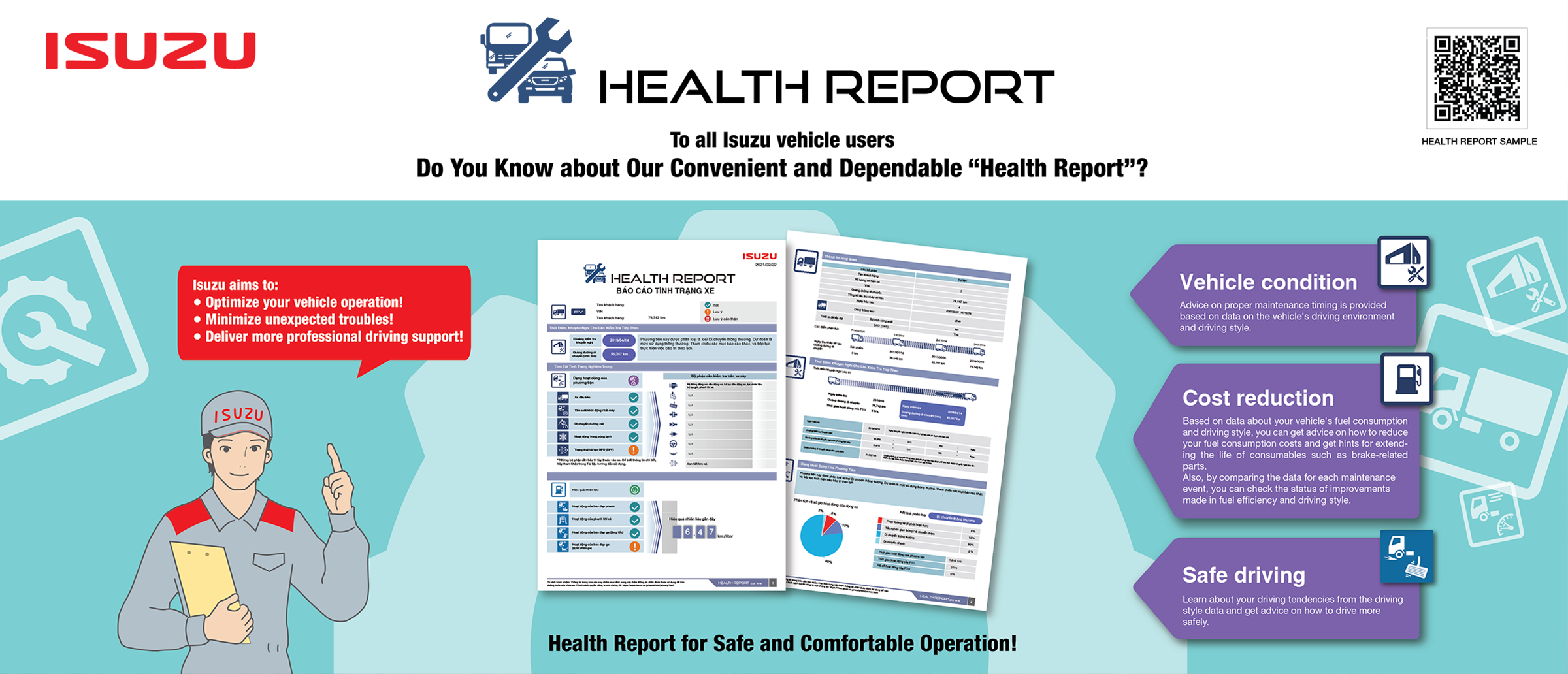 The new generation of Isuzu trucks is equipped with a Common Rail electronic fuel injection engine, applying the new Isuzu GREEN POWER technology, helping to optimize power, durability, fuel economy & environmental friendly