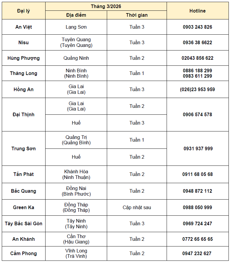 Nhằm tri ân khách hàng đã tin dùng sản phẩm cùng với mong muốn được đồng hành và chăm sóc cho xe được vận hành trong điều kiện hoàn hảo nhất. ISUZU Việt Nam xin gửi đến Quý Khách hàng lịch trình tổ chức chương trình “Bảo dưỡng & Sửa chữa lưu động” trong tháng 3 năm 2026.