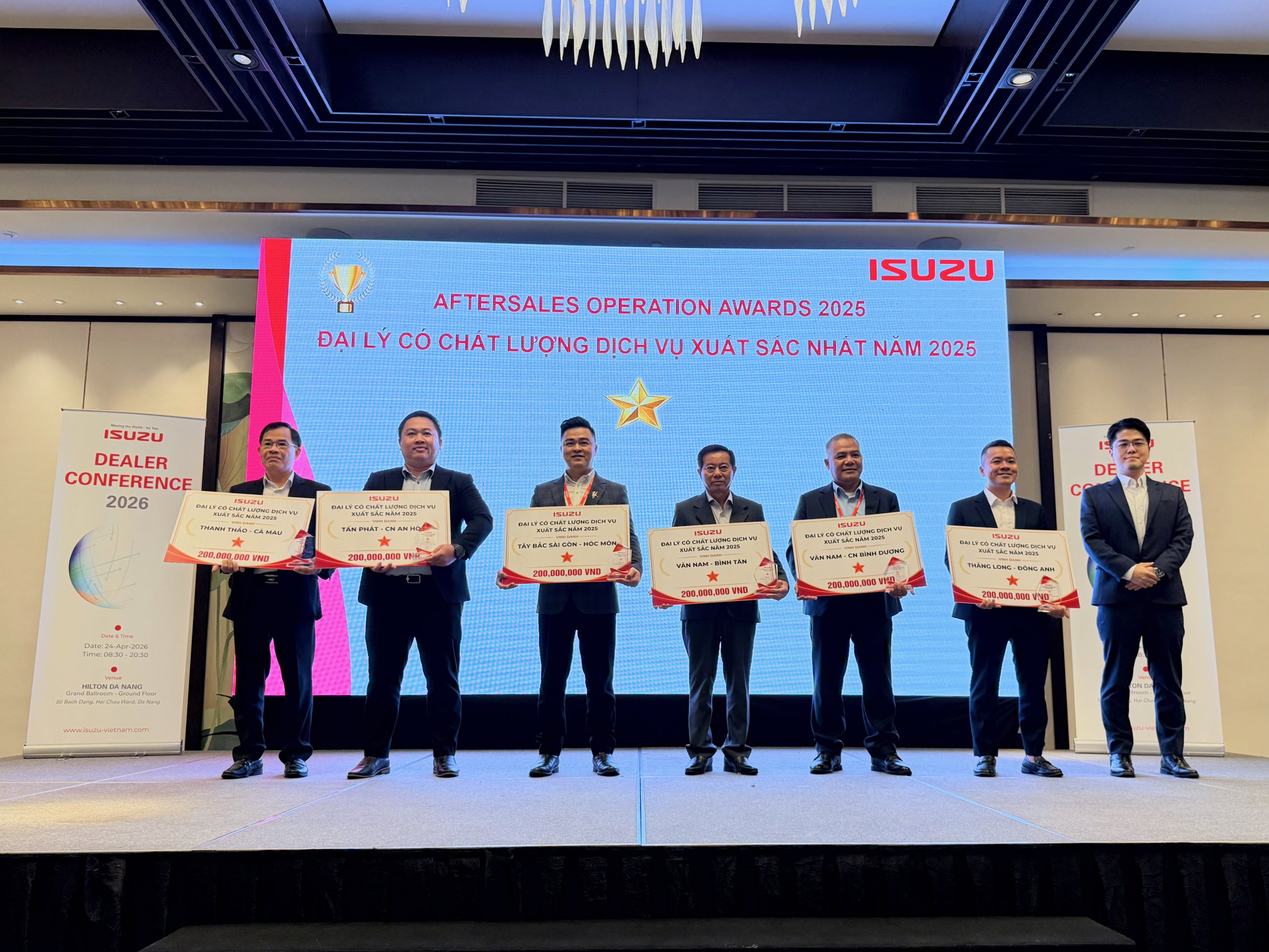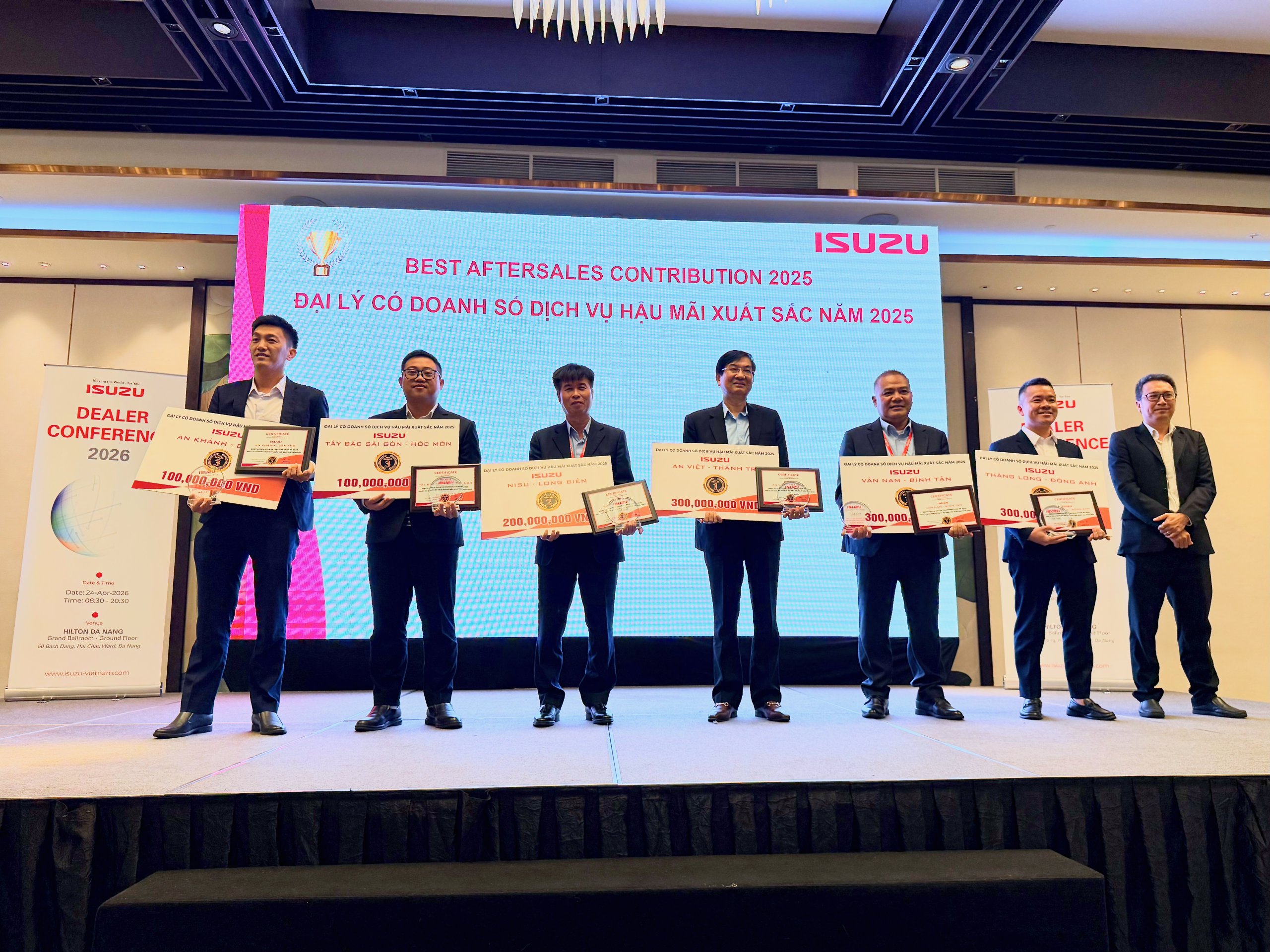 – Best Aftersales Contribution Award: ISUZU An Khanh – Can Tho, ISUZU Tay Bac Sai Gon – Hoc Mon, ISUZU Nisu – Long Bien, ISUZU An Viet – Thanh Tri, ISUZU Van Nam – Binh Tan, ISUZU Thang Long – Dong Anh (photo from left to right).