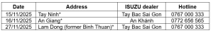 Additionally, customers can stay updated with the latest information about ISUZU Vehicle Display & Test Drive event on the official website of the ISUZU Vietnam Dealer network as listed below: