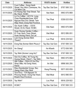 To allow our valued customers to experience ISUZU vehicles firsthand and explore detailed information about our current product lineup, ISUZU Vietnam is pleased to announce the November 2025 Test Drive & Display Event Schedule.