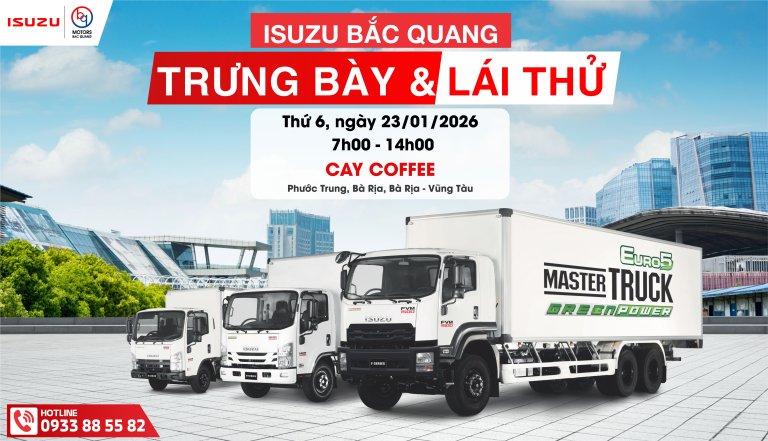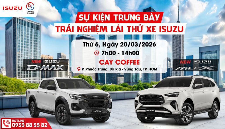 🚘 TRẢI NGHIỆM LÁI THỬ CÁC DÒNG XE ISUZU 🚘 Isuzu Bắc Quang trân trọng kính mời Quý khách hàng đến tham gia sự kiện Lái thử xe Isuzu – cơ hội tuyệt vời để khám phá sức mạnh & công nghệ vượt trội của Isuzu ngay tại: 📍 Mộc Coffee & Tea 06 Đ. Bình Giã, TT. Ngãi Giao, Châu Đức, Bà Rịa - Vũng Tàu. ⏰ Thời gian: 7h00 – Ngày 19/12/2025 ✨ Đặc biệt, khi tham gia sự kiện Quý khách sẽ được: ✅ Trải nghiệm lái thử các dòng xe Isuzu mới nhất ✅ Tư vấn…